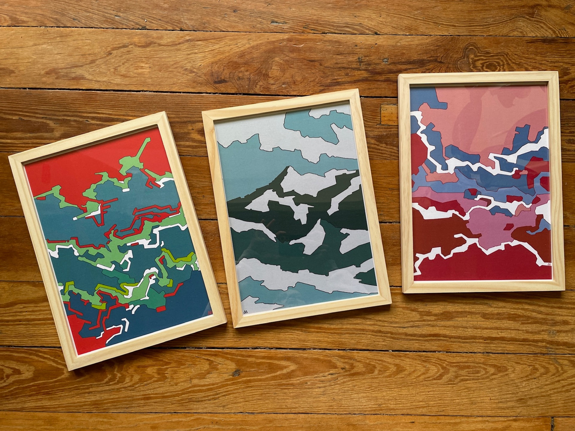 Láminas "Montañas y estratos", enmarcadas. DinA4.