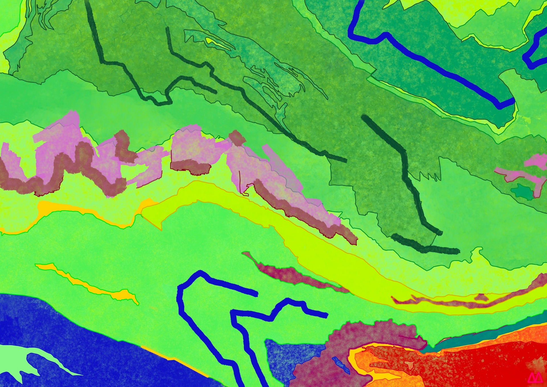 Láminas "Montañas y estratos", enmarcadas. DinA4.